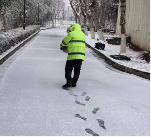 下午3點多,朱家橋片區管網運維部收到經開區經管處發出的支援訊息后,迅速組織“除雪突擊隊”,以雪為令,與時間賽跑,全力以赴做好道路掃雪鏟冰工作,確保居民正常通行。