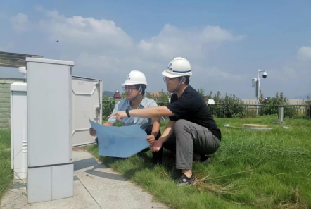 ▲ 劉濤濤(左)和同事查看水庫水文數據采集信息 攝影:陳自力