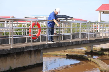 ▲ 張翔宇正在檢測生化池各工藝段溶解氧 長江環保集團供圖