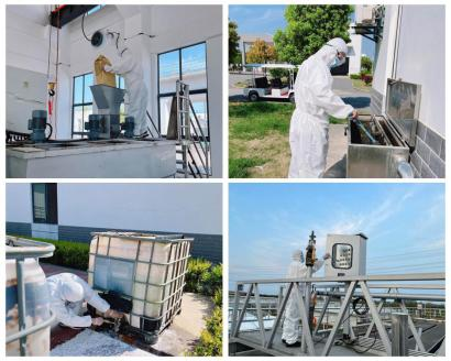 為確保作業人員的安全,公司以最高要求對廠區進行消殺除菌,并要求工作人員全程穿著防護服。面對疫情來襲,長江環保人化身污水處理廠的“大白”,在看不見的戰場堅守抗疫。