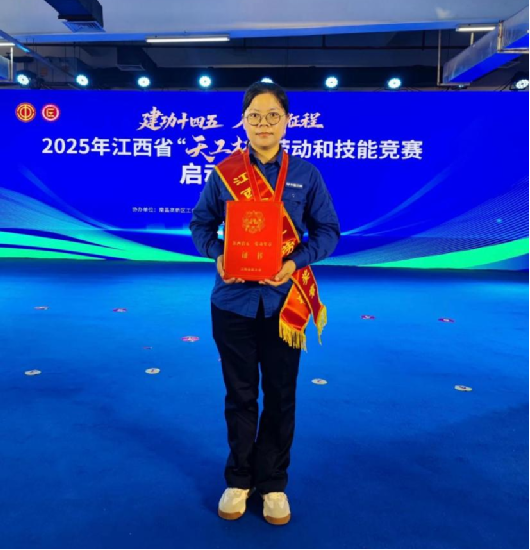 在2024年江西省“天工杯”長江大保護勞動和技能競賽中,胡孝備參加了水質檢測項目。在理論考核和實操檢測兩個環節中,她憑借扎實的專業功底和出色的臨場發揮,從全省眾多選手中脫穎而出,以水質化驗檢測項目總分第一的好成績摘得桂冠。因成績優異,胡孝備被江西省總工會授予2024年“天工杯工匠”榮譽稱號