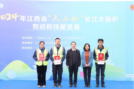 2024年江西省“天工杯”長江大保護勞動和技能競賽一等獎合影(左一:胡孝備) 照片來源:江西省總工會 龔玉磊